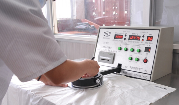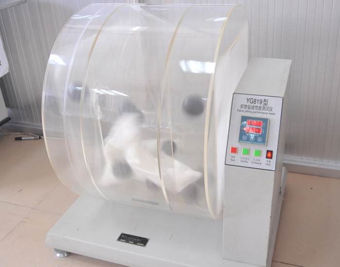 We made 2 samples of 60*60 (cm) according to the square size of the commonly used duvets, put them in the test instrument, and simulated the anti-drilling performance of the fabric under the action of external force through the instrument. The instrument rotates 1000 revolutions in both forward and reverse directions, and is equipped with 10 solid balls inside, which can complete different motion trajectories in multiple directions, simulate the wear test of the sample to the greatest extent, and scientifically and intuitively reflect the anti-drilling performance of the fabric. The test is completed. Afterwards, no down silk or feather silk was found on the surface of the duvet fabric and inside the instrument.