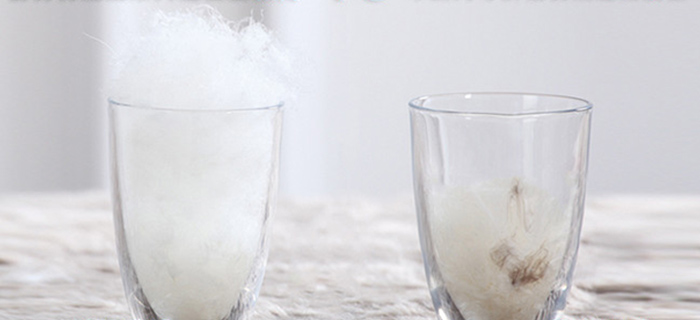 However, in order to reduce costs, some unscrupulous merchants directly smash the feathers into filaments by artificial processing. Usually, a feather filament is about 2 to 3 cm in length. It doesn't feel hard stems, but these small feathers are actually harder than down, like small needles.